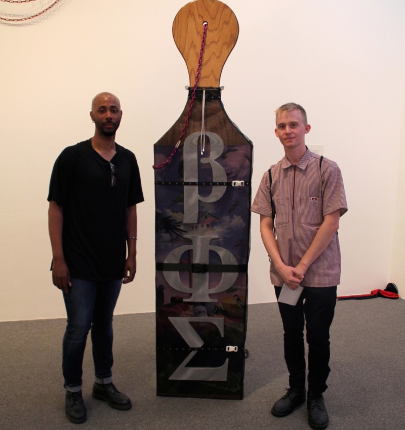 Malcolm Lomax and Daniel Wickerham in front of one of the works from their Sondheim entry. -Courtesy of Baltimore Museum of Art